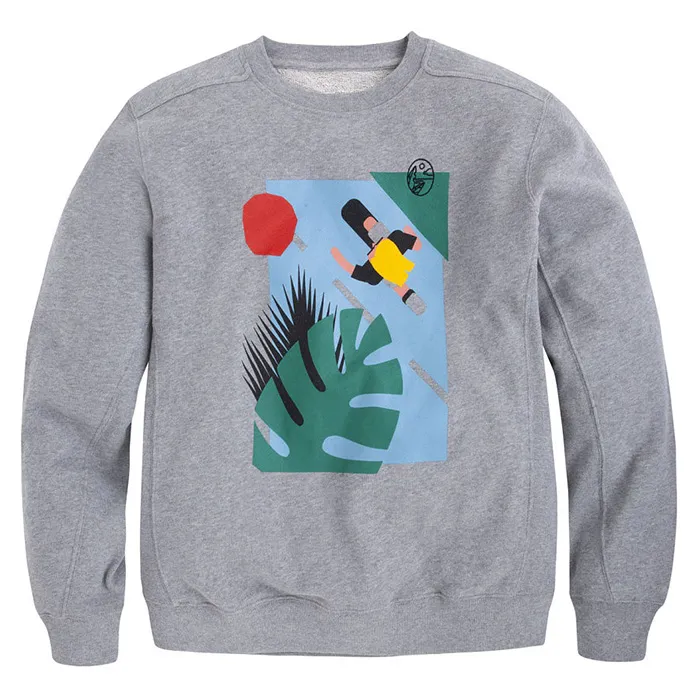 Свитшот — удобная верхняя одежда. Круглый воротник подчеркнет силуэт шеи. Поэтому кофту можно носить поверх рубашки или футболки. Такое сочетание выглядит необычно и стильно. Яркий принт на свитшоте задает цвет образа. Подбирайте детали гардероба под главный рисунок. Например, носки, шнурки или ремешок от часов — в едином цвете.